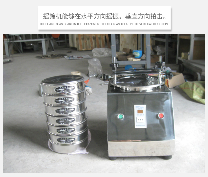 3、搖篩機,規(guī)范規(guī)定搖篩機能夠在水平方向搖振,垂直方向拍擊。搖振次數(shù)為100~200次/分鐘,拍擊次數(shù)為50~70次/分鐘;